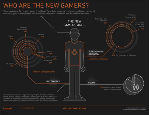 Over the past few years, the popularity of mobile phones and tablets have contributed to an explosion in gaming by offering users the newfound ability to game anytime and anywhere. A study [1] just released by the research consultancy, Latitude [2], offers a deeper-dive investigation into the new gaming landscape and the profile of tomorrow’s gamer, suggesting opportunities for both game developers and companies across industries. A complete study summary [3] (PDF) is available for download from Latitude.